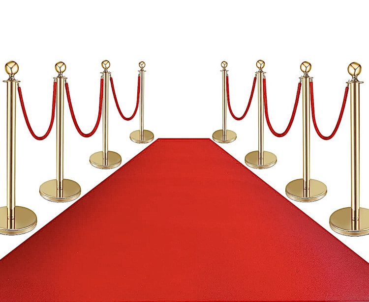 Roll out a touch of glamour with this Red Carpet complete with coordinating ropes and polished poles. Perfect for entrances, VIP lines, photo backdrops, or special events, the set creates an elegant, red-carpet experience that instantly elevates any occasion. The carpet provides a bold, classic look while the ropes and poles guide guests and frame the entrance, making arrivals feel exclusive and photographed-ready. Ideal for proms, award nights, grand openings, weddings, or themed parties where you want guests to feel celebrated and important. Easy to position and remove, it adds instant style without fuss.