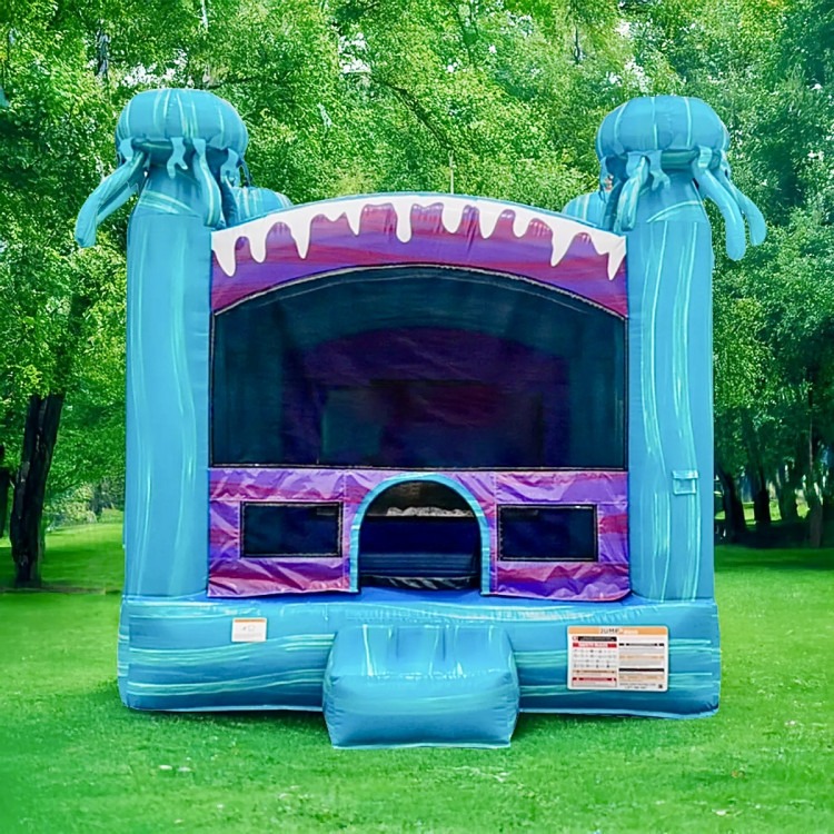Bright, eye-catching and built for nonstop jumping fun, the Electric (13x13) Bounce House is a classic square jumper dressed in vivid blues and purples that make it perfect for backyard birthday parties, school events, or community celebrations. Sized to fit most yards and driveways, this 13x13 inflatable gives kids plenty of room to bounce, play tag, or practice simple flips while keeping them contained and visible to supervisors. The front features an easy step-over entrance and breathable mesh windows on three sides for air circulation and clear sightlines, and the covered top provides light shade and a sheltered play space if the sun comes out.