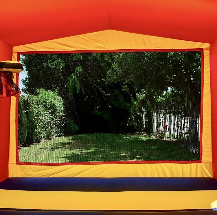 A bright, family-friendly inflatable that seats a crowd of energetic kids and instantly turns an ordinary yard into a festive play zone. This 13x13 castle-style jumper features four tall corner turrets, high mesh sidewalls for airflow and visibility, and a low step entry that lets little ones hop in and out safely. The roomy jumping floor gives children plenty of space to bounce, run in place, and play games, while the mesh windows let supervising adults keep a clear eye on the action.