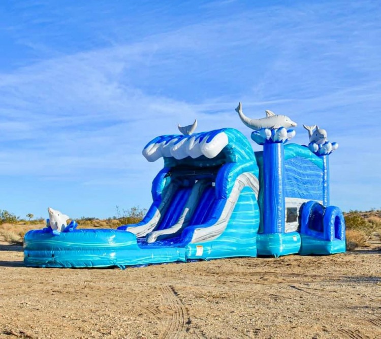 Choose Wet Or DryDolphin Bounce House Combo:Choose Wet Or Dry1Dropdown12531089_25281770011The "Choose Wet Or Dry" rental brings the ultimate flexibility to your party or event. This item is designed to transform from a thrilling water slide experience to a fun-filled dry slide in minutes. On scorching hot days, connect a hose, and watch as the slide turns into a cool and refreshing escape. Prefer to keep things dry? Simply skip the water feature and enjoy a smooth, exhilarating ride. Ideal for all ages, this versatile slide guarantees fun no matter the weather, making any gathering unforgettable. DryDolphin Bounce House Combo:Dry102531089_2528177_25281790000"Dry" typically refers to an inflatable rental without any water features, perfect for a day full of fun without the mess. It's designed to give kids and adults alike a blast as they jump, bounce, and play in a safe, dry environment. Ideal for those sunny days when you want the excitement of a bounce house, minus the splash! There is no upcharge for using the unit dry. Wet (+$50)Dolphin Bounce House Combo:Wet (+$50)102531089_2528177_25281810000"Make any celebration extra splashy with the 'Wet' inflatable option! For an additional $50, transform your bouncy experience into a refreshing aquatic adventure. Perfect for summer fun, it keeps everyone cool and entertained with built-in water features, bringing a refreshing twist to your party or event!" There is a upcharge of $50 for using the unit wet.