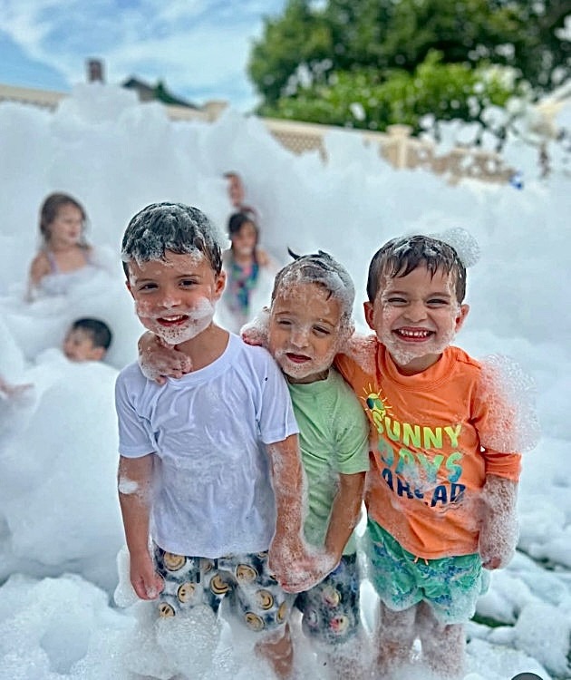 We deliver, set up, and show you how to use the machine (IT'S SUPER EASY) and then you get to blast the kids with foam! The supplies will last 60-90 minutes depending on how long you run the foam cannon and how high you pile the foam up.