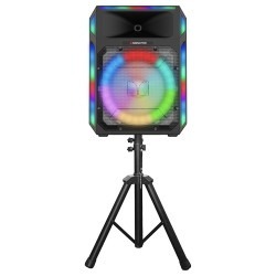 Bluetooth Speaker With Tripod & MicrophoneFoam Cannon:Bluetooth Speaker With Tripod & Microphone1Dropdown03021083_30248490000 Powerful portable Bluetooth speaker on an adjustable tripod — built to fill small to medium gatherings with clear, punchy sound and eye-catching LED lighting. Pairs quickly with any phone or tablet, runs on a rechargeable battery for hours of wireless play, and includes a wired microphone for announcements, karaoke, or emcee duties. Simple, intuitive controls and a solid wireless range make setup fast and stress-free; the rugged, splash-friendly housing stands up to outdoor backyard parties, birthday celebrations, or casual events.