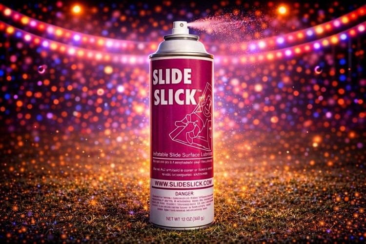 Keep every slide fast, smooth, and kid-approved with Slide Slick. This non-toxic, water-based lubricant is formulated specifically for inflatable slides and other vinyl play surfaces to reduce friction and help riders glide more easily. It applies quickly and evenly to restore slickness to well-used or drying slides, preventing snags and slow spots without leaving a sticky residue. Easy to use at events, it helps maintain a fun, consistent ride experience while protecting the vinyl from unnecessary wear. Safe for supervised use around children when directions are followed. Ideal for rental operators who want reliable performance and happier guests on every run.