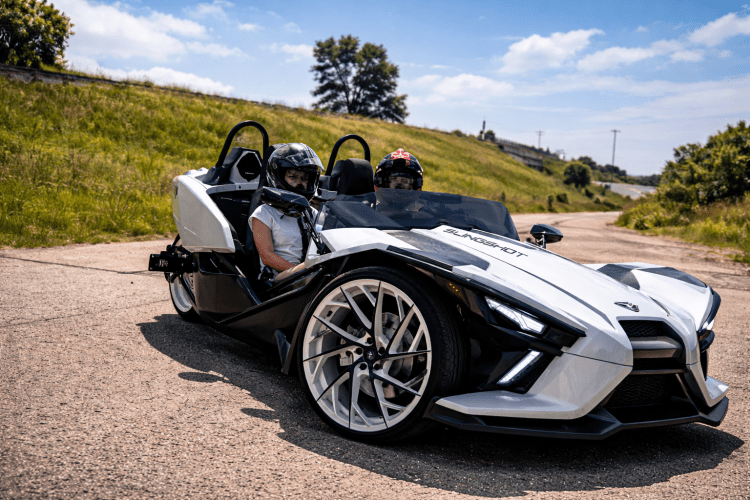 Slingshot Joy Ride — Strap into a two-seat, open-air Polaris for a pulse-quickening short tour or photo-ready spin. This three-wheeled roadster pairs low-slung, sport-car looks and wide alloy wheels with razor-sharp steering and athletic acceleration to deliver a wind-in-your-face, highly engaging ride. The exposed cockpit takes passengers for thrills and great photo angles; helmets, basic safety gear, and a passenger briefing are included so guests can enjoy the experience confidently and responsibly. Ideal for scenic runs, high-adrenaline laps, or standout arrival photos, this rental emphasizes visceral connection to the road and head-turning presence without requiring any special equipment from you.