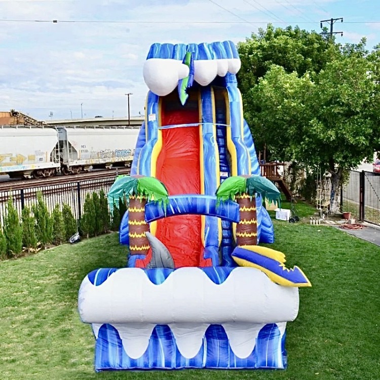 Prepare for the ultimate splash of excitement with the Shark Sighted (24 ft) Waterslide! Imagine a thrilling adventure of slipping and sliding down a towering wave, trying to out-swim the sleek predator lurking below—or so the theme suggests. At an impressive 24 feet, this waterslide promises towering exhilaration, making every heart race and every giggle echo in its watery wake. Perfect for beating the heat, it’s a safe, controlled dive into fun, ensuring a fin-tastic time for kids and adults alike. Dive in and let the splash-induced laughter begin!